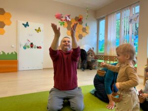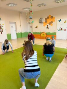 Zajęcia rozpoczęły się od integracyjnej zabawy „Iskierka przyjaźni”, która w naturalny sposób połączyła dzieci i rodziców. Już od pierwszych chwil było widać uśmiechy, zaangażowanie i otwartość 😊