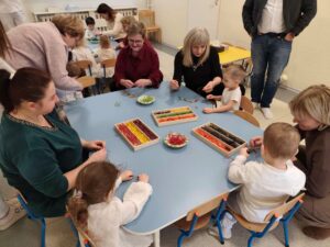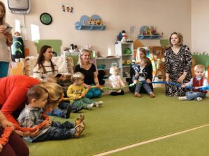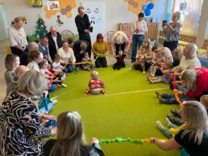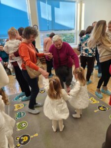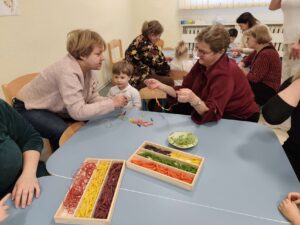 Podczas spotkań dzieci wraz z dziadkami uczestniczyły w zabawach muzyczno-ruchowych oraz wspólnych działaniach plastycznych, takich jak tworzenie laurek. Aktywności były zaplanowane przez opiekunów, jednak miały naturalny i dobrowolny charakter – dzieci mogły uczestniczyć w nich w swoim tempie, bez presji i bez konieczności występów.