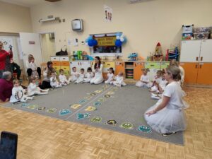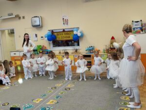 W starszych grupach dzieci w sposób spontaniczny i naturalny zaśpiewały piosenki dla Babć i Dziadków, traktując je jako element wspólnej zabawy i radosnego spotkania, a nie występ sceniczny.